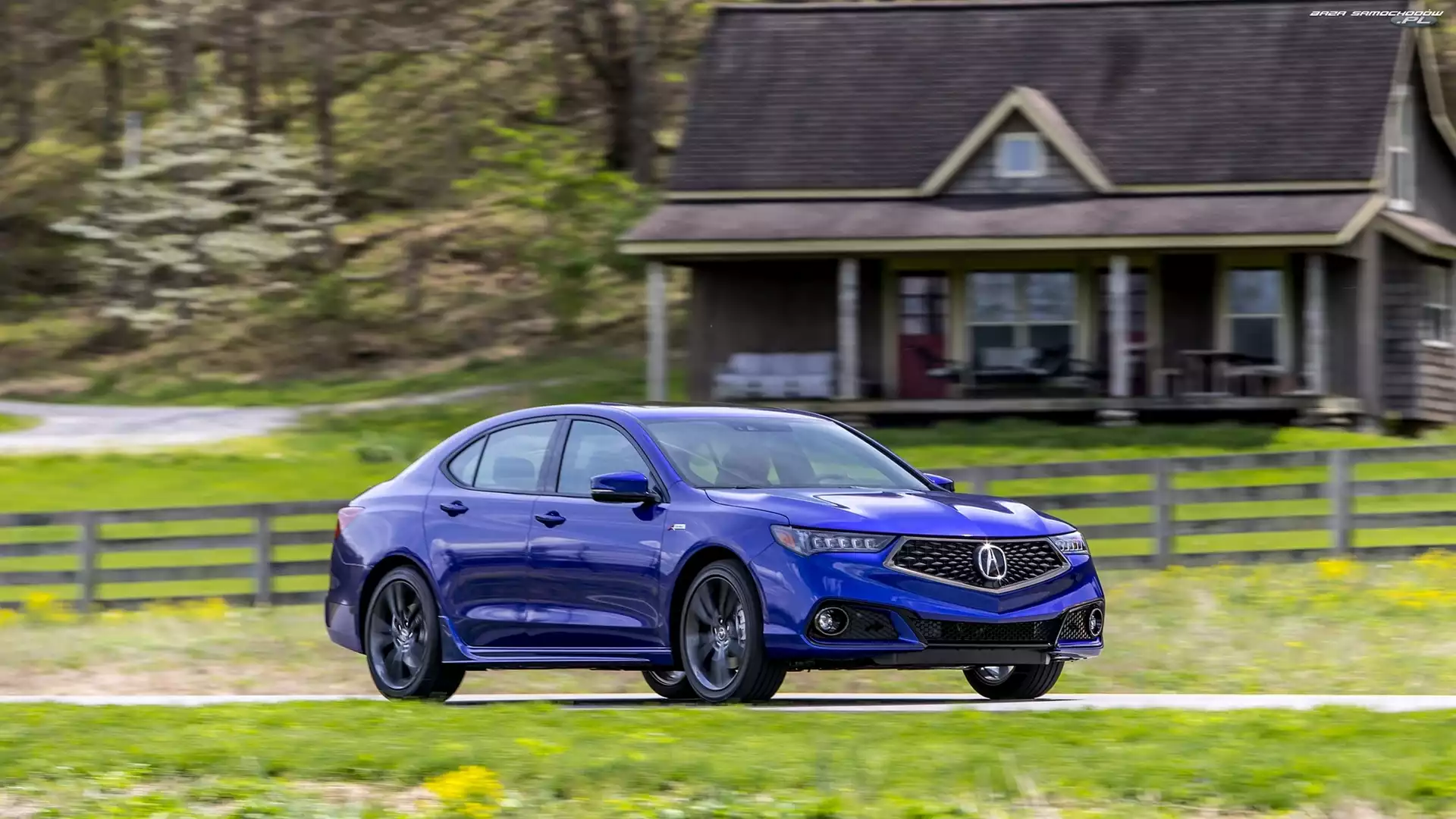 Acura TLX, Ogrodzenie, Niebieska, Dom- Zdjęcia samochodów