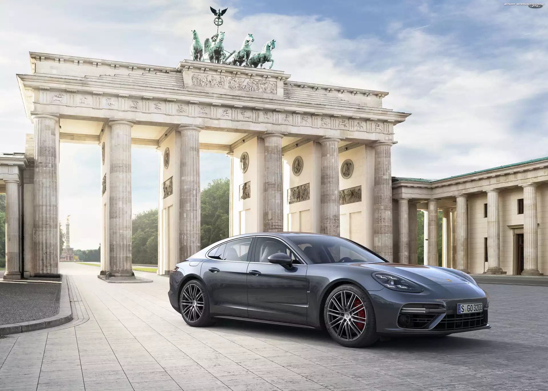 Niemcy, Berlin, 971, Porsche Panamera II, Brama Brandenburska- Zdjęcia samochodów