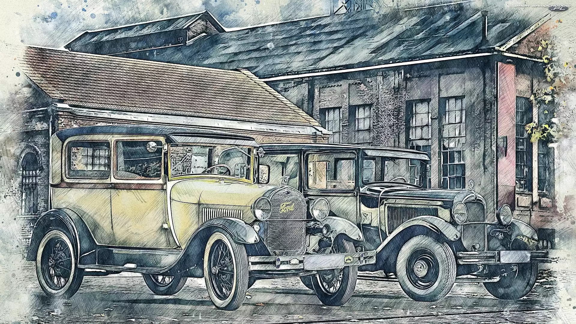 Grafika, Samochody zabytkowe, Dom- Zdjęcia samochodów